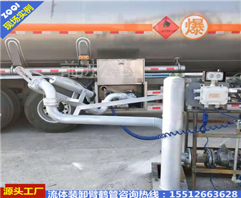 *典型的槽車底部裝卸鶴管,與槽車用快速接頭或者法蘭聯(lián)接,采用五個旋轉接頭。介質由槽車卸油口經鶴管自上而下流入管線內,采用重力作用下的自流方式就可卸車,接口高度較高時